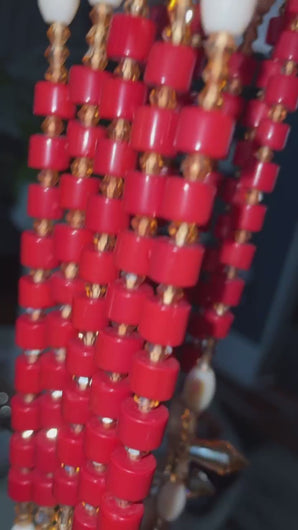 Red Strand, with gold crystal spacers, gold crystal shaped accents.